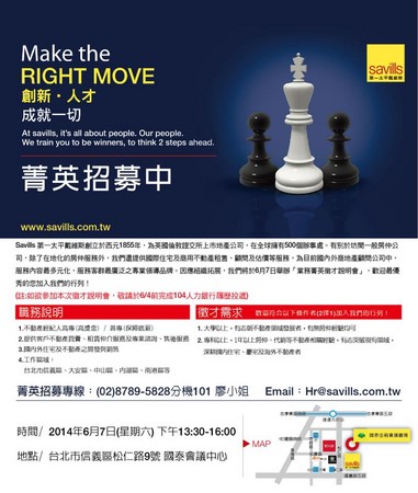 全球第四大房地產代理諮詢企業「第一太平戴維斯」(Savills)因應組織拓展,現在台招募不動產相關產業好手,並於6月7日在台北舉辦業務精英徵才說明會,邀請有志朝不動產領域發展的求職者前往洽詢面試。