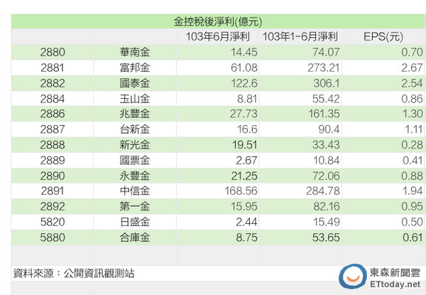 至於連續5年蟬聯金控獲利王的富邦金,累計上半年稅後獲利273.21億元,儘管不敵國泰金的306.1億元以及中信金的284.78億元,不過,每股盈餘2.67元,仍勝過國泰金的2.54元,同時,國泰金以及富邦金也是唯二每股盈餘超過2元的金控。