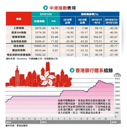今年以來,香港股市完全的弱勢,最直接的因素是資金流出股市,據海通證券的研究報告指出,二○一四年第四季到一五年第三季,香港證券市場連續四季資金淨流出,合計規模超過四○○億美元,創○八年以來紀錄。估計直到今年第一季,香港證券市場還是面臨資金淨流出的壓力。
