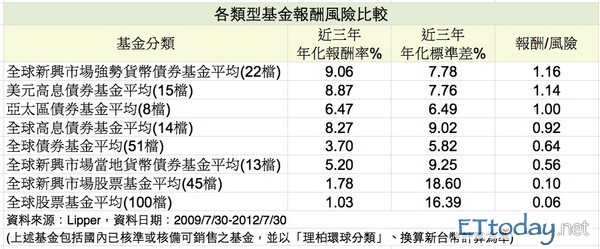 群益投信債券部副總經理張俊逸指出,由於債券本質為穩定獲取利息,在投資市場不平靜、景氣動能走緩的環境下,資金對具固定收益特性的商品偏好不會改變。各類債券型基金中,具基本面及利率優勢的新興市場債最值得注意。以近三年年化報酬率來看,全球新興市場強勢貨幣債券基金平均達9.06%,優於美元高息債券基金的8.87%及全球高息債券基金的8.27%,若觀察報酬/風險值,全球新興市場強勢貨幣債券基金亦最具投資效率。