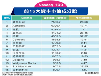 雖然第一季美國GDP僅○.七%,上季美國企業獲利年增率卻創下二○一一年第一季以來單季最強勁成長,法國總統初選沒出現意外,而市場預期川普稅改政策對企業海外獲利匯回有利,對科技股尤其是利多,在蘋果、亞馬遜、特斯拉和Alphabet等股價維持創新高格局下,推升Nasdaq指數在衝上六千點後續創歷史新高。